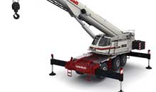 Трехосная модель RTC-80150 Series II оснащена шестисекционной телескопической стрелой, длина которой достигает 59,5 м. При дополнительной установке откидного удлинителя и 3-метрового гуська обеспечивается максимальная высота крюка на отметке 78,6 м. При этом удлинитель как вручную, так и гидравлически может менять угол наклона (диапазон - от 2 до 45 градусов).