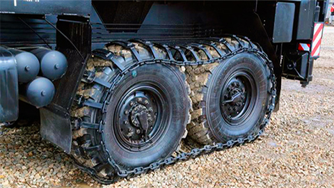 Производитель предлагает надевать на колеса задней тележки вездеходного шасси оригинальные гусеницы, которые позволят технике работать в условиях бездорожья при любой погоде.