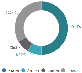 Б/у краны поступили на российский рынок из разных стран: большая часть из Японии — 50%, из Австрии — 9%, из Швеции — 8%. Ещё треть рынка разделили другие страны.
