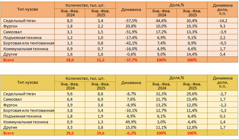 Всего за январь – февраль 2025 года было реализовано около 1 000 единиц новой подъёмной техники на автошасси и 700 единиц коммунальных машин. Это на 17,4% и 16% хуже результатов прошлого года соответственно.