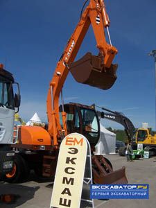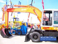 | НОВЫЙ ПРОИЗВОДИТЕЛЬ ИЗ ТВЕРИ Сенсацией для всех специалистов отрасли стала презентация стенда нового и потому никому пока не известного российского производителя экскаваторов - компании ЗАО ЭКСМАШ из Твери. Мы своими глазами увидели и сфотографировали опытный образец пневмоколесного экскаватора 130W. Говорят, что он был сконструирован бывшими сотрудниками ТВЭКСа. Данной новинке предстоит пройти испытания и усовершенствования, и только затем она будет запущена в серийное производство. |
