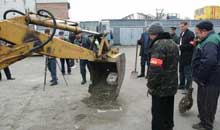 Протащить ведро с водой по путаному лабиринту не руками, а автокраном - задача не из легких. В этом конкурсе крановщику нужна не только сноровка и глазомер, но и железная выдержка. Чуть занервничал, дрогнула рука, ведро накренилось в бок - и вода пролилась на землю. А за такой промах снимаются баллы. Но, пожалуй, самым зрелищным стал последний конкурс. Машинисты экскаватора в самом прямом смысле слова должны были выполнить ювелирную работу. На первом этапе нужно закрыть ковшом спичечный коробок, да так закрыть, чтобы его не помять. Следом, также ковшом экскаватора забить в пенек гвоздь, да так забить, чтобы не погнуть. Кульминацией испытания становится фантастический трюк - экскаваторщик должен открыть ковшом своей машины бутылку минеральной воды. Зрелище это более чем впечатляющее. В момент, когда ковш дотрагивался горлышка бутылки, на полигоне на несколько мгновений воцарялась полная тишина и казалось, пролети сейчас комар, и его будет слышно. И взрывным вздохом облегчения разрывалась эта тишь, когда об асфальт стукалась пробка от минералки. Экскаваторщики справились с заданием. Никто не ударила в грязь лицом. Кто-то быстрее, кто-то медленнее, кто-то с первой попытки, а кто-то с четвертой, но свою бутылку открыл.