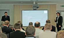 На семинаре были затронуты вопросы: технологии фрезерования, быстроизнашиваемость деталей на технику Wirtgen Group, оригинальные запасные части, сервисное обслуживание. Среди выступающих – Б. Грюбер, тренер по оригинальным запасным частям Wirtgen GmbH, Р. Фелькл, инженер по сервисному обслуживанию Hamm AG, Агапов А.С., генеральный директор ООО «Предприятие «Стройкомплект», и др.