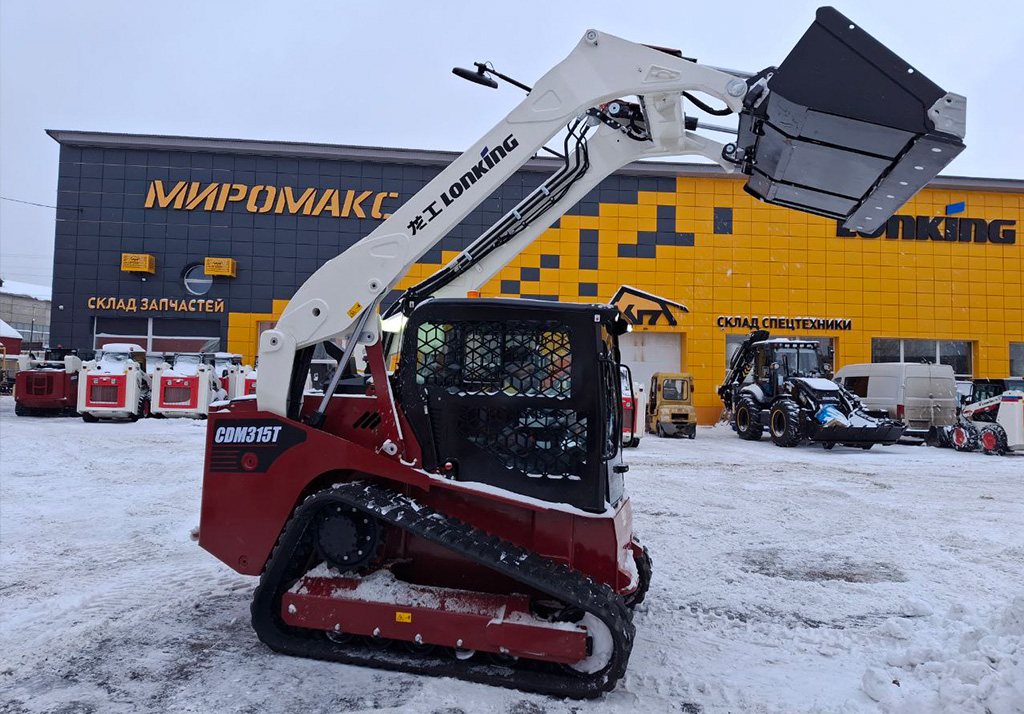 Гусеничный мини-погрузчик Lonking CDM 315T — новинка китайского производителя для сложных условий эксплуатации, где проходимость колёсной техники значительно ограничена или вовсе невозможна. Благодаря широким гусеницам он преодолевает рыхлый грунт, глубокий снег и уклоны до 30 градусов, оказывая минимальное давление на грунт и не повреждая покрытие.