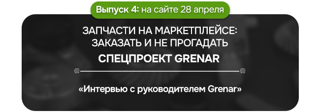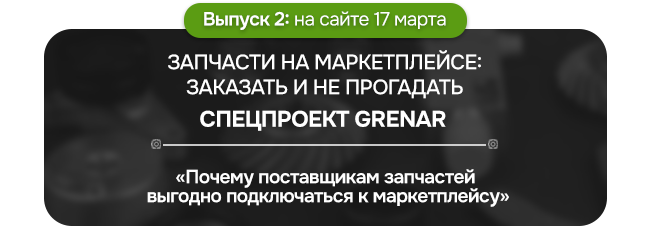 Время перемен настало — рынок запчастей стремительно уходит в онлайн, и маркетплейс Grenar принимает вызов, открывая новые возможности для бизнеса. В этом спецпроекте рассказываем о том, почему маркетплейс — это выгодный инструмент роста и диверсификации продаж для селлеров, а также почему покупатели могут быть уверены в качестве запчастей и безопасности сделок