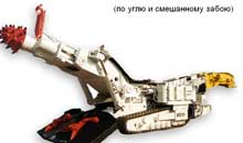 Поставленная цель достигается за счёт увеличения производительности проходки спаренной мощностью поворотных кругов и увеличенной мощностью спаренных гидродвижителей с повышенным сопротивлением их опор силам сдвига комбайна.