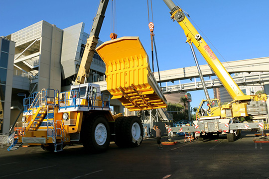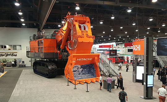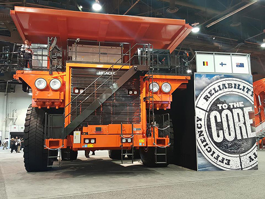 Основу экспозиции японского производителя составили карьерный экскаватор EX5600-6 (вес - 533-537 т, мощность - 2x1 500 л.с.) и самосвал с электрическим приводом EH4000AC-3 (грузоподъемность - 221 т, мощность - 2 500 л.с.). Отметим, что последний доступен для заказа российскими покупателями с этого года.