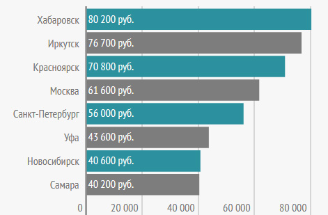В целом доля вакансий, в которых речь шла о вахте, превысила 42%. И именно города, где преобладали варианты с вахтовой работой, стали лидерами по размерам зарплат. В частности, речь идет о Красноярске, Иркутске и Хабаровске.