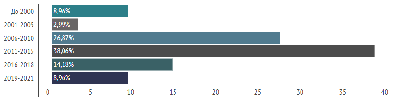Чаще всего в объявлениях о продаже подержанной техники указывали машины 2006–2015 гг. Но в целом на рынке были доступны экскаваторы как возрастом более 20 лет, так и последних годов выпуска.