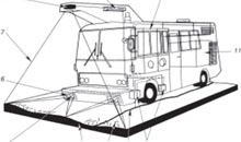 | Размещение аппаратуры дефлектометра падающего груза внутри базового мини-автобуса: |