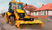 Новая машина от JCB призвана быстро и эффективно устранять дефекты асфальтового полотна, для чего оснащена специальным навесным оборудованием. Вместо экскаваторного ковша устанавливается фреза с 45 стальными зубьями, а вместо фронтального ковша - роторная щетка. С помощью фрезы дорожное полотно подготавливают к дальнейшей заливке асфальтом, а щетка очищает зону ремонта и собирает снятый материал и мусор в специальный контейнер. Производитель отмечает, что и фреза, и щетка могут демонтироваться, тем самым возвращая машине роль стандартного экскаватора-погрузчика. Максимальная скорость движения новинки - 40 км/ч.
