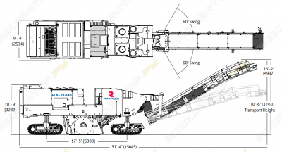 Эксплуатационная длина (поднятый конвейер) 13.94 м; Эксплуат. ширина 2.97 м; Макс.раб. высота 3,95м