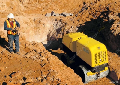 Траншейный виброкаток с дистанционным управлением.