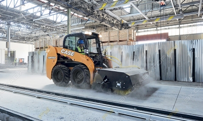 Погрузчик можно арендовать с ковшом, паллетными вилами, дорожной щеткой. Можно установить накладные резиновые гусеницы. Они придают погрузчику улучшенную проходимость и не портят поверхность.