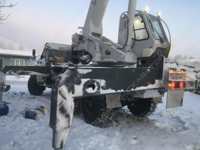Кран отличается исключительной компактностью и проходимостью по бездорожью.
