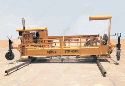 Бетоноукладчик-распределитель PS-3000Базовая ширина укладки:3,65 – 12,05 мТолщина укладки: 0 – 71,12 смРаспределитель PowerPaversPS-3000 предназначен для распределения бетона на ширину 3,65 – 12 метров, с последующей укладкой бетоноукладчиком.Эта машина идет перед бетоноукладчиком во время укладки армированного бетонного полотна и распределяет бетон на ширину укладки. Применение распределителя бетона увеличивает производительность в 2-2,5 раза.В настоящий момент у распределителя в послужном списке выполненных работ взлетно-посадочные полосы для обслуживания тяжелых воздушных судов в международных аэропортах Саранска и Самары.Двухгусеничный распределитель и перегружатель PS-3000 идет в 20–30 м впереди бетоноукладчика, для того чтобы распределить перед ним бетонную смесь по всей ширине укладываемого покрытия. У машины есть ленточный конвейер, на который самосвал выгружает бетон, подъезжая сбоку. По конвейеру смесь передается уже на полосу, после чего шнек, расположенный впереди машины, распределяет бетон, а специальная форма удаляет излишки. Распределитель незаменим при укладке покрытия с армированием, поскольку, если есть армокаркас, самосвал не может на него наезжать, а значит, должен выгружать бетонную смесь сбоку. А в случае укладки без армирования (во многих аэропортах армирование не делают за счет увеличения толщины покрытия) распределитель работает как перегружатель, позволяя бетоно укладчику идти без остановок. Это серьезно повышает качество покрытия: не образуются волны, которые неизбежно возникают при остановках.Характеристики распределителя:Двигатель дизельный, с турбонаддувом, водяного охлаждения, мощность 250 л.с. (2200 об. / мин)Гусеничное шасси (2 гусеницы с полиуретановыми башмаками, длина 4,27 м, ширина 36 см каждая) с двухскоростным приводомШнековая система распределения бетона с обратным ходом, износоустойчивым покрытием, индивидуальным контролем, диаметр шнека 45,7 смСистема пластин отсекателей, с изменяемой высотой, гидравлическим приводом.Складывающийся конвейер (ширина 152,4 см) для подачи бетона с бесшовной лентой. Размещение справа или слеваГидравлический узел натяжения ленты конвейера.Пропорциональная гидравлическая система контроля вертикального нивелирования (2 датчика)Пропорциональная электрическая система контроля движения (1 датчик)Система раздвижения шасси с гидравлическим приводомОпорные домкраты с гидравлическим приводом для погрузкиКомплект для мойки с баком 833 лРабочий мостик в задней части распределителя-укладчикаСистема автореверса Коррус-Техникс 11 лет на площадке