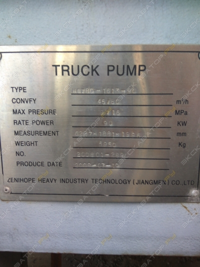 Sany HBT60C-1816 III Б/у2011 год 2 500 000 руб. Стационарный бетононасос Москва 150 м/ч Бетононасос стационарный дизельный (прицепной бетонный насос с дизельным двигателем; буксируемый бетононасос на базе автомобильного прицепа) SANY HBT60C-1816D Год выпуска 2011. Габаритная длина стационарного бетононасоса (L), мм 6691 Габаритная ширина стационарного бетононасоса (W), мм 2068 Габаритная высота стационарного бетононасоса (H), мм 2607 Транспортировочная высота (H1), мм 2320 Высота загрузки бетона (H2), мм 1320 Вес стационарного бетононасоса, кг 6400 Давление подачи бетона (теоретическое): Низкое давление, МПа 8 Давление подачи бетона (теоретическое): Высокое давление, МПа13 Производительность бетононасоса (расчётный выход бетона): Низкое давление, куб.м/час - 65 Производительность бетононасоса (расчётный выход бетона): Высокое давление, куб.м/час 40 Силовой агрегат - дизельный двигатель Номинальная мощность дизельного двигателя, кВт.115, 156 л.с. Диаметр выводного цилиндра, мм - 200 Максимальный ход поршня выводного цилиндра, мм -1400 Ёмкость загрузочного ковша, куб.м - 0,7 Монолитпромбетон 10 лет на площадке Обновлено сегодня
