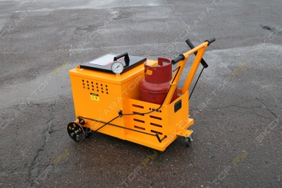 Подача осуществляется насосом через шланг с "удочкой". Подача мастики, плавно регулируемая от 0 до 30 л\мин. Имеется компрессор для продувки шланга.Подвеска мягкая одноосная торсионная с тормозом наката и ручным стояночным тормозом.
