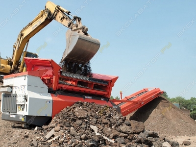 ДВС Cummins QSB4.5-C130С, 97 кВт, Евро 3; Производительность 400 т/ч-400мм приемный бункер 5 м3; пластинчатый питатель; привод грохота - гидравлический; гидронасос с давлением 250 бар и производительностью 100 л/мин, гидромотор с давлением 250 бар и производительностью 190 л/мин; виброгрохот 2-дековый (3 товарные фракции) с вариантами комплектования колосниковыми решетками, листовыми и проволочными ситами; автоматическая система смазки грохота; система пылеподавления; скорость движения 0,7 км/ч; сенсорный дисплей + беспроводной пульт дистанционного управления. Стальные машины 7 лет на площадке