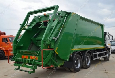 Под заказ. Мусоровоз с задней загрузкой Infore Enviro на базе шасси FAW 6x4 — это мощное решение для сбора и транспортировки отходов в крупных промышленных и муниципальных зонах. Благодаря высокой грузоподъемности и вместительному бункеру, техника эффективно справляется с большими объемами отходов, сокращая количество рейсов. Функциональные возможности: Объем бункера 22 м3: Мусоровоз способен перевозить значительное количество отходов, что уменьшает частоту выгрузки и увеличивает эффективность работы. Портальный подъемник с грузоподъемностью 5 тонн: Подходит для работы с большими контейнерами объемом до 8000 литров, что делает технику универсальной в применении. Быстрый цикл уплотнения: Время цикла уплотнения составляет 24 секунды, что позволяет быстро и эффективно сжимать отходы. Гибкость загрузки: Возможность работы с контейнерами объемом от 120 до 1100 литров и крупными бункерами объемом 8000 литров. Сферы применения: Муниципальные службы: Идеально подходит для использования в городских условиях для сбора и транспортировки отходов с крупных объектов и районов. Промышленные зоны: Машина FAW 6x4 эффективно работает на заводах и предприятиях с большими объемами отходов. Строительные площадки: Надежное решение для сбора и транспортировки строительных отходов. Эксплуатационные характеристики: Шасси FAW Колесная формула 6x4 Объем бункера 22 м3 Колесная база 4300 мм Модель мусоровоза J6P390 Тип задней подвески рессорная Наличие портального подъемника есть Грузоподъемность портального подъемника 5 тонн Время уплотнения 24 сек. Тип загружаемых бункеров 120-1100 л, 8000 л Давление в гидравлической системе 210 бар Надежность: Шасси FAW и использование высокопрочной стали обеспечивают долговечность и устойчивость к суровым условиям эксплуатации. Усиленная рессорная подвеска: Обеспечивает стабильную и плавную работу даже при полной загрузке, что особенно важно для работы в сложных условиях. Давление в гидравлической системе — 210 бар: Обеспечивает высокую производительность и надежность работы оборудования даже при высокой нагрузке. Оптимизация для России: Специальные комплектации для эксплуатации в суровых климатических условиях с усиленными компонентами и защитой от коррозии. Комплектация: Электрическое управление с кнопок. Два пульта управления для удобной эксплуатации с обеих сторон машины. Автоматически запускаемый фиксатор краев. Камера заднего вида с монитором для безопасного управления при движении задним ходом. Рабочие фонари с обеих сторон машины для улучшенной видимости во время работы. Проблесковые маячки оранжевого цвета для обеспечения дополнительной безопасности. Дополнительная защита гидравлических труб и шлангов. Кран для слива жидкости из приемного бункера. Преимущества работы с ООО «Технотрейд»: Оперативная доставка по всей России и странам СНГ. Профессиональное обслуживание с использованием оригинальных запчастей. Гибкие условия лизинга для обновления вашего парка техники. Обучение операторов для эффективной эксплуатации мусоровоза. Дополнительные услуги: Поставка оригинальных запчастей и аксессуаров. Профессиональное сервисное обслуживание и диагностика. Часто задаваемые вопросы (FAQ): Какой объем бункера у данной модели? Объем бункера составляет 22 м?, что позволяет перевозить большие объемы отходов за один рейс.