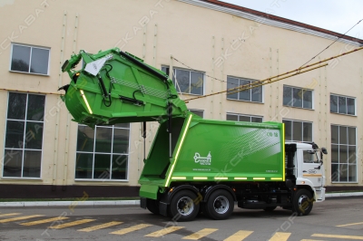 Под заказ. Мусоровоз с задней загрузкой Infore Enviro на базе шасси FAW 6x4 — это мощное решение для сбора и транспортировки отходов в крупных промышленных и муниципальных зонах. Благодаря высокой грузоподъемности и вместительному бункеру, техника эффективно справляется с большими объемами отходов, сокращая количество рейсов. Функциональные возможности: Объем бункера 22 м3: Мусоровоз способен перевозить значительное количество отходов, что уменьшает частоту выгрузки и увеличивает эффективность работы. Портальный подъемник с грузоподъемностью 5 тонн: Подходит для работы с большими контейнерами объемом до 8000 литров, что делает технику универсальной в применении. Быстрый цикл уплотнения: Время цикла уплотнения составляет 24 секунды, что позволяет быстро и эффективно сжимать отходы. Гибкость загрузки: Возможность работы с контейнерами объемом от 120 до 1100 литров и крупными бункерами объемом 8000 литров. Сферы применения: Муниципальные службы: Идеально подходит для использования в городских условиях для сбора и транспортировки отходов с крупных объектов и районов. Промышленные зоны: Машина FAW 6x4 эффективно работает на заводах и предприятиях с большими объемами отходов. Строительные площадки: Надежное решение для сбора и транспортировки строительных отходов. Эксплуатационные характеристики: Шасси FAW Колесная формула 6x4 Объем бункера 22 м3 Колесная база 4300 мм Модель мусоровоза J6P390 Тип задней подвески рессорная Наличие портального подъемника есть Грузоподъемность портального подъемника 5 тонн Время уплотнения 24 сек. Тип загружаемых бункеров 120-1100 л, 8000 л Давление в гидравлической системе 210 бар Надежность: Шасси FAW и использование высокопрочной стали обеспечивают долговечность и устойчивость к суровым условиям эксплуатации. Усиленная рессорная подвеска: Обеспечивает стабильную и плавную работу даже при полной загрузке, что особенно важно для работы в сложных условиях. Давление в гидравлической системе — 210 бар: Обеспечивает высокую производительность и надежность работы оборудования даже при высокой нагрузке. Оптимизация для России: Специальные комплектации для эксплуатации в суровых климатических условиях с усиленными компонентами и защитой от коррозии. Комплектация: Электрическое управление с кнопок. Два пульта управления для удобной эксплуатации с обеих сторон машины. Автоматически запускаемый фиксатор краев. Камера заднего вида с монитором для безопасного управления при движении задним ходом. Рабочие фонари с обеих сторон машины для улучшенной видимости во время работы. Проблесковые маячки оранжевого цвета для обеспечения дополнительной безопасности. Дополнительная защита гидравлических труб и шлангов. Кран для слива жидкости из приемного бункера. Преимущества работы с ООО «Технотрейд»: Оперативная доставка по всей России и странам СНГ. Профессиональное обслуживание с использованием оригинальных запчастей. Гибкие условия лизинга для обновления вашего парка техники. Обучение операторов для эффективной эксплуатации мусоровоза. Дополнительные услуги: Поставка оригинальных запчастей и аксессуаров. Профессиональное сервисное обслуживание и диагностика. Часто задаваемые вопросы (FAQ): Какой объем бункера у данной модели? Объем бункера составляет 22 м?, что позволяет перевозить большие объемы отходов за один рейс.