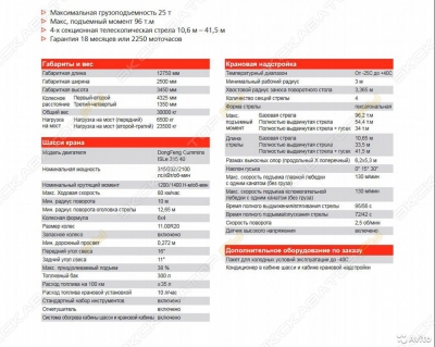 * АДК - ОФ. ДИЛЕР!* ЛУЧШАЯ ЦЕНА НА РЫНКЕ * 3 ТО В ПОДАРОК * ДОСТАВКА ПО ВСЕЙ РФ В ТЕЧЕНИЕ 7 ДНЕЙ * ГАРАНТИЯ: 2 ГОДА ИЛИ 4000 МОТОЧАСОВ * РАССРОЧКА_______________________________________________________________________________________ 2025 начал выходить на финишную прямую! А самый лучший момент для покупки автокрана был вчера!Исправь это! Успей купить автокран по специальной цене до 30 ноября!_______________________________________________________________________________________! РАБОТАЕМ ПО ВСЕЙ РОССИИ! РАССТОЯНИЕ - НЕПРЕГРАДА ДЛЯ НАС! ДОСТАВКА В МАКСИМАЛЬНО СЖАТЫЕ СРОКИ !_______________________________________________________________________________________ Технические характеристики автокрана Palfinger Sany STC250T5-5: Грузоподъемность, т: 25- Масса брутто, кг: 32670- Двигатель, модель: WЕIСНАI WP7.300E51(Евро V)- Мощность, кВт (л.с): 220 (299)- Длина / Ширина / Высота, мм: 12830 / 2550 / 3500- Колесная формула: 6 х 4- Секции стрелы (количество): 5- Профиль стрелы: U – образное сечение- Основная стрела: Длина стрелы, м: 10,8; Максимальная высота подъема, м: 11,3- Полностью выдвинутая стрела: Длина стрелы, м: 42; Максимальная высота подъема, м: 42,5- Полностью выдвинутая стрела + удлинитель: Длина стрелы, м: 50; Максимальная высота подъема, м: 50 _______________________________________________________________________________________Раз Вы дочитали до конца, значит должны знать, что при оплате машины в течение 3-х дней, полагается максимально приятный бонус! ГК Автодоркомплект 9 лет на площадке