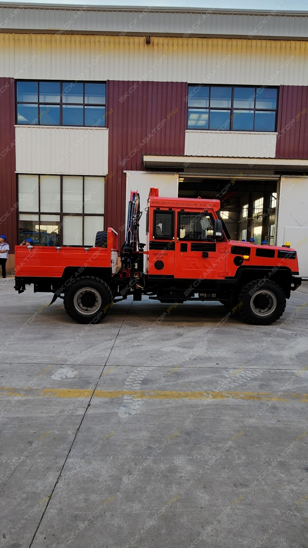 Шахтный пикап Huafeng FL-0.5 с гидроподъемником (и люлькой) вместительность кабины 2 чел. грузоподъемность кузова 1 500 кг грузоподъемность гидроподъемника 1 500 кг Грузоподъемность люльки 200 кг вылет стрелы 1 390-4 230 мм высота подъема стрелы 6 000 мм поворот стрелы 330° Двигатель YUCHAI YCD4T33T6-115 мощность 85kW/2400r/min экологический класс Tier III / Stage 3 Система охлаждения жидкостная Воздушный фильтр сухого типа Выхлопная система глушитель с каталитическим нейтрализатором АКПП Huafeng ZL15D5 (гидромеханическая) ГТР Huafeng YJ280 Мосты Huafeng 24TWJ/23TWQ Шины 33.5*11-16 Тормоз Posi-stop Рама высокопрочная конструкционная сталь и сварная конструкция топливный бак 85 л. гидравлический бак 60 л. Закрытая кабина с кондиционером, отопителем, Сертифицированная защита ROPS/FOPS Размеры длина 5 100 мм ширина 2 065 мм высота 2 200 мм клиренс 240 мм преодолеваемый уклон макс. 14° общая масса 5 000 кг Скорость передвижения 1-я передача (вперед) 0-12 km/h 2-я передача (вперед) 0-25 km/h 1-я передача (назад) 0-12 km/h Комплектация: • Автоматическая система пожаротушения • Предпусковой подогреватель двигателя типа Webasto • Отопитель салона • Камеры 360° с выводом на монитор • LED освещение • Подогрев лобового стекла и боковых зеркал • Подогрев сидений • Датчики давления шин • Защитные сетки на стекла с быстросъемными креплениями • Звуковой и световой сигнал заднего хода • Противооткатные упоры (2 шт.) • Проблесковый маячок • Запасное колесо с диском (1 шт.) • Знак аварийной остановки • Набор инструмента для ремонта • Огнетушитель (2 шт.) • Аптечка • Домкрат • Шприц-нагнетатель для ручной смазки • ЗИП на 3000 м.ч.