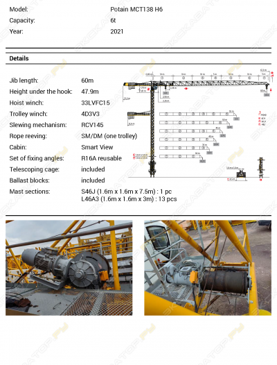 Башенные краны POTAIN б/у и новые в Московской области