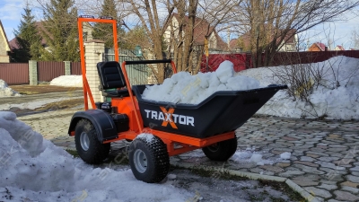 Мини-самосвал оборудован двигателем и механической трансмиссией, которая приводит в действие колесный привод. Трансмиссия обеспечивает движение машины вперед 2 скорости и 1 назад с выбором необходимого скоростного режима. Мини-думпер снабжен кузовом-самосвалом на 300 кг (200 л Мини-думпер Мотомул предназначается для погрузочно-разгрузочных работ и перевозки, как сыпучих, так и других грузов по рабочему участку. Компактные размеры мини-самосвала делают его незаменимым при работе в стесненных условиях и помещениях, ширина менее 800 мм, что позволяет мини- думперу проехать практически в любой дверной проем зданий и сооружений. Колесный привод 4х4 обеспечивает передвижение по любой поверхности, простое управление позволяет обучиться работе с техникой в кратчайшие сроки и не требует специальных навыков. Мини-самосвал используется в частных хозяйствах, в работе сельхоз предприятий, фермерских хозяйств, на строительных площадках, жилищно-коммунальных хозяйствах.