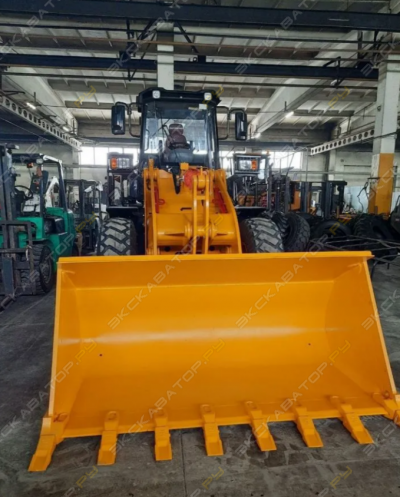 Машина комплектуется усиленным ковшом объёмом 2,3 м³ со сменными коронками. Кабина оснащена защитой ROPS/FOPS и системой кондиционирования. Техника спроектирована для эксплуатации в карьерах, на строительных площадках и промышленных объектах. Благодаря возможности установки сменного оборудования (вил, захватов, щёток) модель востребована в сельском хозяйстве и коммунальном секторе.