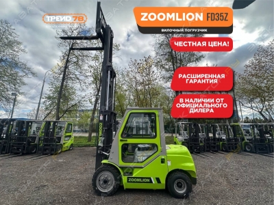 Дизельный погрузчик Zoomlion FD35 высота подъёма 4.5 м, либо 3мГрузоподъемность 3.5тШины: Пневматические \ ЦельнолитыеСайдшифт, свободный ходЗащитная крыша или Кабина с отопителемДоп.опции: двойной воздушный фильтр Автоспецмаш 2 года на площадке