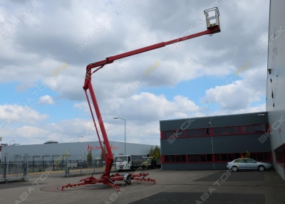 GTZZ-16EJ Коленчатый подъемникТехнические характеристики•РазмерыРабочая высота, максимальная, м - 17,7Высота платформы, максимальная, м - 15,7Горизонтальный вылет, максимальный, м - 9,6Просвет при подъеме и повороте, максимальный, м - 7,25Длина в сложенном состоянии, м - 7,7Ширина в сложенном состоянии, м - 2,32Высота в сложенном состоянии, м - 2,35Габариты платформы (Д/Ш), м - 1,53/0,76/1,1Колесная база, м - 2,28Дорожный просвет (центр), м - 2,28Перемещение - 2 ведущих (2WD) и 2и рулевое управление - управляемых (2WS) колесаВес, кг - 7300•ПроизводительностьГрузоподъемность, кг - 230Максимальное кол-во людей - 2 челСкорость движения в сложенном состоянии (max) - 5,3 км/чСкорость движения в поднятом состоянии (max) - 1,1 км/чПреодолеваемый уклон в сложенном состоянии - 30%Радиус поворота, внутренний (в слож./поднятом сост.), м - 1,4Радиус поворота, внешний (в слож./поднятом сост.), м - 4,4Рабочий уклон, максимальный - 5°Шины - 26*12-16•МощностьИсточник питания - АКБ 5 KW 6 В*8/390 А/чТопливный бак / Гидробак, л -Уровень шума - ‹82 дБАВстроенное зарядное устройство 48 В/40 А•КомпактностьБлагодаря компактной конструкции, высокой маневренности, точному управлению и мощному двигателю конструкция подходит для работы в ограниченном пространстве•360°Возможность вращения поворотной опоры на 360°•Аварийный спускСистема аварийной безопасности. Оператор может использовать аварийный предохранительный насос для безопасного спуска, если рабочая платформа заблокировалась на высоте•БезопасностьДополнительная система безопасности. Ножная педаль, джойстик управления работают только при нажатой педали•МобильностьСтрела может вертикально поворачиваться вверх и вниз на 135 градусов, а платформа - на 160 градусов•Удобный пультНаземный пульт управления оснащен дисплеем с большим экраном, самодиагностика без подключения к компьютеру•УстойчивостьАдаптивное выравнивающее устройство сработает автоматически, когда шасси столкнется с препятствием. Обеспечивает устойчивость оборудования на поверхности с уклоном до 5 градусов•Для работы на высотеКалитка рабочей платформы с самоблокирующимся замком обеспечивает дополнительную безопасность•ГрузоподъемностьБольшая стальная платформа, стандартная грузоподъемность до 250 кг Под заказ. Цена без НДС. Склад запасных частей. Доставка по РФ. Заводская гарантия. Двигатель без нареканий. Полная документация. Сервисная горячая линия. Обслуживалась у оф. дилера. Готова к эксплуатации. SKYBOOM Россия