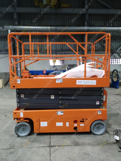 Самоходный ножничный подъемник SSL-06DCТехнические характеристики• РазмерыРабочая высота, максимальная, м – 6,5Высота платформы, максимальная, м – 4,5Длина в сложенном состоянии, м – 1,43Ширина в сложенном состоянии, м – 0,78Высота в сложенном состоянии с направляющими, м – 2,05Высота со сложенными перилами, м – 1,68Габариты платформы (Д/Ш/В), м – 1,3/0,7/1,1Длина выдвижной секции, м – 80,6Колесная база, м – 1,08Дорожный просвет, м – 0,07с активной системой защиты от ям, м – 0,02• ПроизводительностьГрузоподъемность (выдвижной платформы), кг – 240Максимальное кол-во людей – 2 чел.Скорость движения в сложенном состоянии – 3,5 км/чСкорость движения в поднятом состоянии – 0,8 км/чПреодолеваемый уклон в сложенном состоянии – 25%Радиус поворота, внутренний – 0,22Радиус поворота, внешний, м – 1,55Рабочий уклон, максимальный - 3°Шины, мм - 23080• МощностьИсточник питания - АКБ 2,2 KW 12*2 В/ 115 А/чГидравлический бак, л – (не указан)Бак для дизельного топлива, л – (не указан)Уровень шума – (не указан)Вес, кг - 890• МобильностьОборудование можно перемещать как в походном положении, так и в рабочем, оно может маневрировать во время выполнения производственных задач, что значительно повышает эффективность работы рабочей платформы• МаневренностьПоворотные колеса можно повернуть на 90 градусов, выбрать высокую или низкую скорость передвижения, что помогает выполнять работы в стесненных условиях и ограниченном пространстве• Бесшумный источник питанияЭлектричество в качестве источника питания: низкий уровень шума, отсутствие выбросов, отсутствие загрязнения в помещении• Поворотно-откидные панелиДля удобства обслуживания и ремонта с обеих сторон корпуса установлены поворотно откидные панели• Защита от опрокидыванияОснащен устройством защиты от опрокидывания, которое позволяет безопасно преодолевать неровности производственной площадки• Увеличенная рабочая платформаПлатформу можно удлинить на 0,9 метра, что увеличивает ее поверхность• Складываемые огражденияДля удобства транспортировки и прохождения через дверные проемы ограждение можно сложить или разобрать• Автоматическая система самоторможенияСистема автоматически останавливает движение подъёмника, когда джойстик отпускают Под заказ. Цена без НДС. Не требует вложений. Склад запасных частей. Заводская гарантия. Доставка по РФ. Полная документация. Сервисная горячая линия. Обслуживалась у оф. дилера. Готова к эксплуатации. Двигатель без нареканий.В наличии. SKYBOOM Россия