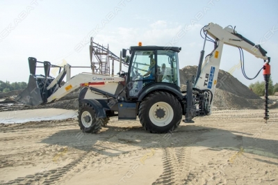 В наличии с ЭПСМ. Усиленные мосты и редуктор. Джойстик. Цены ниже рыночных, доставка по всей России. Лизинг. Заводская гарантия. Габаритные размеры 6420х2360х3100 мм Ширина ковша 2400 мм Габаритная высота 3120 мм Номинальная грузоподъемность 2500 кг Эксплуатационная масса 10500 кг Объём ковша погрузчика 1.2 м3 (6-в-1 - многофункциональный: планировка, погрузчика, бульдозерные работы, засыпка, профилирование и пр) Максимальная высота подъема фронтального погрузчика (угол разгрузки 41°) 3100 мм Расстояние разгрузки 890 мм Радиус поворота 5800 мм Объём ковша экскаватора 0.3 м3 Максимальный радиус копания 5365 мм Максимальная высота загрузки 3760 мм Максимальная высота копания 5490 мм Подъемная сила при максимальном радиусе копания 1220 кг Максимальная глубина копания (телескопическая стрела) 4970 мм Максимальная высота погрузки (телескопическая стрела) 4983 мм Максимальная высота копания (телескопическая стрела) 6680 мм Количество контуров Трехконтурный Двигатель YUCHAI YC4A105Z-T20, Дизель, 4-х цилиндровый, дизельный , турбированный с предпусковым подогревом Номинальная мощность 75 кВт / 102 л.с. Объем двигателя 4400 см3 Номинальные обороты 2200 об/мин Максимальный крутящий момент 400 (N.M) Тип Трансмиссии PowerShift КПП Автомат Управление экскаваторной стрелой - Джойстик Управление погрузочным ковшом - Джойстик Скорость 33 км/ч Колесная база 2400 мм Шины (всесезонные с протектором «елочка», привод на 4 колеса) 16, 9-28 Тип тормозной системы Дисковое с защитой суппортов Гидросистема : Производительность насоса 63 мл/об Давление 20 Mpa Заправочные емкости: - Гидробак 130 л - Топливный бак 130 л В комплектацию входит: - Система плавного хода или SRS (Smoothride System) используется для того, чтобы экскаватор мог стабильно ездить даже в процессе удержания груза. Этот эффект достигается за счет амортизации стрелы погрузчика и смягчения ударов при наезде колеса на неровности; - «Крабовый ход»; - Электронная панель приборов; - «Плавающий режим» ковша; - NEW Клавиша выдвижения аутригеров (используется для управления выдвижными опорами) - Механическая блокировка стрелы; - NEW Дополнительное освещение на выносных опорах; - Быстросъемная каретка экскаваторной стрелы; - Боковое смещение каретки - гидравлическое (влево/ вправо) экскаваторной установки; - Кондиционер, печь, вентилятор, стеклоочистители, магнитола MP3/USB; - Крановый крюк на ковше экскаватора; - Проблесковый маячок; - Камера заднего вида цветная; - Комплект ZIP; - Доп. освещение над регистрационным знаком; Дополнительное навесное оборудование: - вилы паллетные (идут в стандартной комплектации) - гидромолот в наличии - ямобур (350/350 мм) в наличии с дополнительными шнеками - ковш траншейный в наличии - вибротрамбовка в наличии - фреза дорожная в наличии - щетка дорожная под заказ - снегоочиститель роторный под заказ и пр. Доставка в любой регион РФ надежными транспортными компаниями Гарантия от завода - изготовителя 12 мес. или 1500 м/ч Оформление товара в лизинг Осуществляем ввоз напрямую от завода - изготовителя Юникс-Трейд 13 лет на площадке