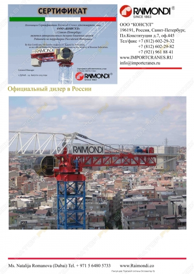 Башенные краны RAIMONDI б/у и новые в Санкт-Петербурге