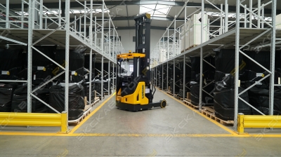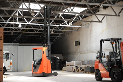 В хорошем состоянии. Техника готова к эксплуатации. Цена с НДС. Ричтрак Noblelift RT20ProH 10500мм в указанной комплектации находится на складе в Санкт-Петербурге. Поможем с доставкой. . Ричтраки Noblelift RT20ProH используются для интенсивных операций на складах с различными типами стеллажных конструкций: фронтальных, набивных, гравитационных, мобильных. . Год выпуска: 2023 Заводская гарантия: 12 месяцев / 1200м/ч ПСМ: электронный Страна происхождения: КНР Тип аккумулятора: свинцово-кислотный Тип двигателя: электрический . ТЕХНИЧЕСКИЕ ХАРАКТЕРИСТИКИ Грузоподъёмность / при центре тяжести груза: 2000кг / 600мм Грузоподъёмность на максимальной высоте подъёма / при центре тяжести груза (без устройства бокового смещения вил): 800кг / 600мм Потеря остаточной грузоподъёмности при установке устройства бокового устройства смещения вил: -100кг Ширина рабочего прохода (AST) с грузом 800х1200мм: 2975мм Радиус поворота: 1840мм Материал колёс: полиуретан Количество колёс, х-ведущее: 1х / 2 . ГАБАРИТЫ Масса с АКБ: от 5200кг Высота защитного ограждения кабины: 2200мм Общая длина: 2580мм Длина шасси до начала вил, включая спинку вил: 1430мм Ширина шасси: 1430мм Расстояние между опорными стойками: 1000мм Размер вил, толщина / ширина / длина: 40 / 120 / 1150мм Стандарт каретки / ширина по внешним краям вил: 2А / 74мм . МАЧТА Высота подъёма по верхнему краю вил: 10500мм Свободный подъём вил (без увеличения верхнего габарита мачты): 3563мм Габаритная высота сложенной мачты: 4234мм Габаритная высота поднятой мачты: 11410мм Наклон вил вперёд/назад: 4° / 2° . ПРОИЗВОДИТЕЛЬНОСТЬ Тяговый двигатель: 7кВт Двигатель подъёма: 12,5кВт Скорость движения с грузом / без груза: 10 / 11км/ч Скорость подъёма вил с грузом / без груза: 0,35 / 0,50м/с Скорость спуска вил с грузом / без груза: 0,45 / 0,45м/с Максимальный преодолеваемый уклон с грузом / без груза: 10 / 10% . АККУМУЛЯТОР Тип: свинцово-кислотный Масса: 1145кг Напряжение / ёмкость: 48А / 700Ач Зарядное устройство: 48А / 100А . Комплектация: 3-ступенчатая мачта со свободным подъёмом, высота подъёма по верхнему краю вил - 10 500мм; Контроллеры Curtis с информационной панелью, отображающей статус ричтрака, положение рулевого колеса, направление движения, время наработки в моточасах и уровень заряда АКБ; Тяговый двигатель Schabmuller, AC; редуктор ZF; двигатель подъёма KDS, AC; Электромагнитный тормоз на ведущем колесе, гидравлические тормоза опорных колёс; Регулируемая рулевая колонка, режимы рулевого управления 180° или 360°; Мини-рычаги управления гидравлическими функциями; Светодиодное освещение: фары, комбинированные фонари, проблесковый маячок; Опора для груза высотой 910мм; Интегрированное устройство бокового смещения вил; Беспроводная камера на вилах, дисплей в отделении оператора. Безопасность: автоматическое снижение скорости движения при подъёме груза и в поворотах; замедление мачты в крайних положениях при выдвижении и подъёме; клавиша аварийной остановки; педаль индикации присутствия оператора. . Особенности модели Компоненты ведущих производителей: тяговый двигатель переменного тока Schabmuller или HuaSheng, редуктор ZF GK30; двигатель гидравлики KDS; контроллеры Curtis; Дисплей с индикацией параметров работы и состояния систем ричтрака: положения рулевого колеса, направления движения, времени наработки в моточасах и уровня заряда АКБ; Режимы рулевого управления 180° / 360°; Системы безопасности: автоматическое снижение скорости в поворот