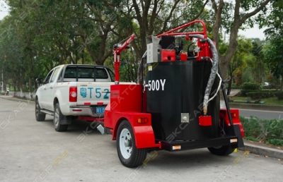 БПМ-500 — заливщик швов, предназначенный для разогрева и подачи под давлением битумно-эластомерных герметизирующих мастик при выполнении работ по герметизации трещин, швов гидроизоляции при ремонтно-строительных работах на автомобильных дорогах, аэродромных покрытиях, мостах, путепроводах. БПМ-500 является специальным тракторным полуприцепом. Основным элементом заливщика является разогреваемая емкость. Разогрев мастики до рабочей температуры происходит дизельной горелкой через масляную рубашку, заполненную термомаслом. Подача разогретой мастики осуществляется через подающий шланг и удочку. На заливщике устанавливается одноцилиндровый дизельный двигатель. Предусмотрена система электро-обогрева шланга подачи мастики и самого заливочного сопла удочки для постоянного поддержания рабочей температуры материала. Технические характеристики: Объем бака500 л Двигатель HYUNDAI –генератор, мощность кВт (л.с)Дизельный, 10 Компрессор HYUNDAI+ Метод нагреваДизельная горелка Ecoflam Италия Мощность нагревателя50 Кв Полная масса вес1300 кг Длина подающего шланга6 м Разогрев мастики через термомаслогорелкой на дизтопливе Рабочая температура120° -190°C Обслуживающий персонал2 чел. Объем топливного бака50 л Объем масляного бака30 л Разогрев мастики через термомаслоне более 2 ч ДвигательДизельный