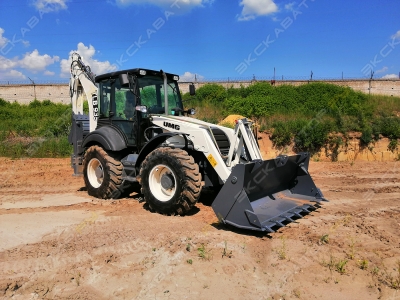 Ключевые технические характеристики:Двигатель, модель - ЯМЗ-53491Номинальная мощность, кВт (л.с.) - 73 (99)Тип и подача насосной установки, л/мин. - 2НШ, 83+55Максимальная скорость передвижения, км/ч - 37Ёмкость погрузочного ковша, м3 - 1,2Высота разгрузки погрузочного ковша, мм. - 2 820Тип экскаваторного оборудования - Стрела изогнутого типа, телескопическая рукоятьМаксимальная глубина копания экскаваторного оборудования, мм. - 5 600Максимальный радиус копания экскаваторного оборудования, мм. - 6 925Объем экскаваторного ковша, м3 - 0,25Длина, ширина, высота, мм. - 6 450 х 2 450 х 3 610Комплектация:1. Кабина с FOPS/ROPS2. Управление погрузочным и экскаваторным оборудованием - рычаги3. Открывающиеся окна на дверях кабины4. Поднимающееся заднее окно5. Аудио (FM, mp3, USB, 2 динамика)6. Климатическая система – отопитель и кондиционер7. Погрузочный челюстной ковш «7 в 1»8. Однопоточный и двухпоточный гидроконтуры с быстроразъемными соединениями UMG 5 лет на площадке