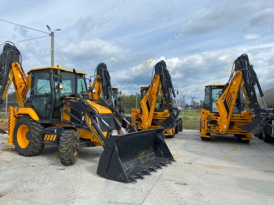 В НАЛИЧИИ. НОВЫЙ. Можно в ЛИЗИНГ. Цена С НДС. Полная документация. Экскаватор-погрузчик растаможен, все документы готовы. Доставка до базы или объекта. ООО "МирСпецТехники" является мультибрендовым официальным дилером по продаже грузового, строительного транспорта Российского и импортного производства. ----- Характеристика: Двигатель DIESELMAX - 100 л.с. Коробка передач - JCB Гидравлическая система - с шестерёнными насосами Колёсная формула - 4х4 (след в след, крабовый ход) Колёса – 16,9х28 Управление - рычаги Гидролиния для подключения навесного оборудования Ковш экскаваторный с зубьями (Объём 0,3 м3) Ковш погрузчика 6 в 1 (Объём 1,3 м3) Эксплуатационная масса машины - 8795 кг Габаритные размеры (ДхШхВ) - 5,91х2,36х3,62 м Телескопическая рукоять (глубина копания) - 5,88 м Высота оси шарнира - 3,45 м ----- ООО "МирСпецТехники" - Уверенная техника для уверенных решений. МирСпецТехники