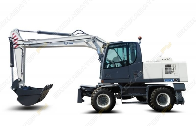 Колёсный экскаватор E170W:Ключевые технические характеристикиДвигатель, модель - ЯМЗ 534Номинальная мощность, кВт (л.с.)88 (120)Подача насосной установки, л/мин2х160Скорость передвижения, I / II км/ч,9 / 23Ёмкость ковша, м30,8Глубина копания, мм6 280Радиус копания, мм9 600Высота выгрузки, мм6 560Усилие на зубе при копании, кН130,9Длина, ширина, высота, мм8 700 х 2 500 х 3 190Емкость топливного бака, л200Комплектация:1. Климатическая система - отопитель и кондиционер2. Верхнее переднее окно сдвигающееся под крышу кабины3. Переключатель режимов работы двигателя и гидросистемы - 4 режима4. Жидкостной предпусковой подогреватель двигателя5. Аудио (магнитола с USB, Bluetooth, 2 динамика)6. Передний отвал с защитным кожухом гидроцилиндров, задние аутригеры7. Однопоточный гидроконтур для активных рабочих органов.8. Кабина с FOPS/ROPS UMG 5 лет на площадке