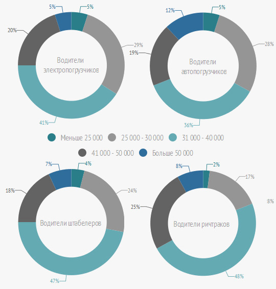Средний уровень зарплат водителей автопогрузчиков и штабелеров