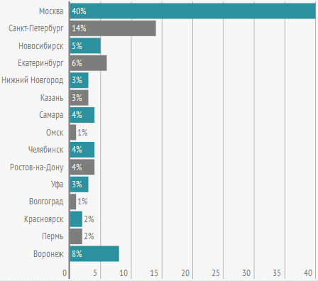 За пределами столицы уровень оплаты труда традиционно отличается в меньшую сторону. Приведем данные по средним зарплатам в четырех городах-миллионниках - Санкт-Петербурге, Екатеринбурге, Новосибирске и Воронеже.