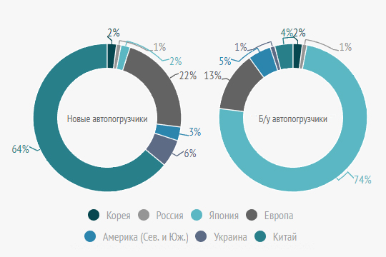 Согласно данным Торговой системы спецтехники, лидирующие позиции в августе 2017 года, как и 6 месяцев назад, принадлежали Китаю (новая техника) и Японии (б/у автопогрузчики). Стоит отметить тот факт, что в рассматриваемый период заметно уменьшилось "присутствие" в Торговой системе новой техники, произведенной в России и Украине (-1,1% и -3,1% соответственно).