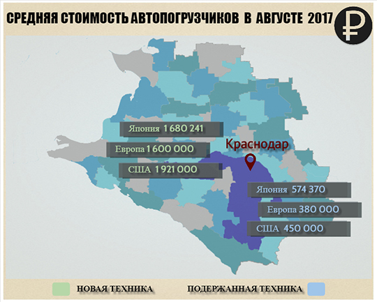 Если сравнивать среднюю стоимость бывшей в эксплуатации техники из Японии, Европы и США, то московские цены отличались от краснодарских на 22%, 51% и 46% соответственно.