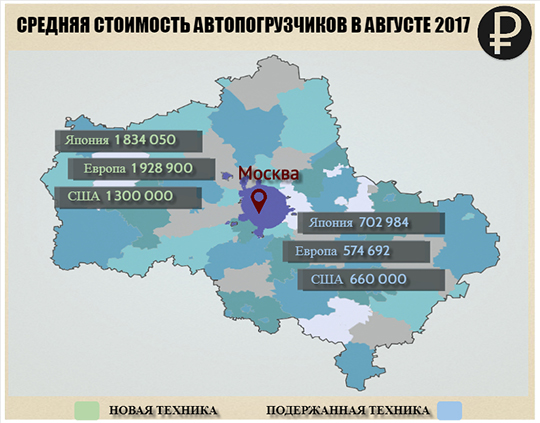 Средняя стоимость новых "европейцев" в столице России в августе 2017 года была на 20,5% выше, чем в Краснодаре. Вилочные погрузчики без наработки, произведенные в Японии, в Москве стоили всего на 9% дороже.