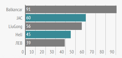 В пятерке самых популярных брендов августа по версии Автопогруз Ру появились и новички: два "китайца" JAC и Heli вытеснили бренды LongKing и Bull.