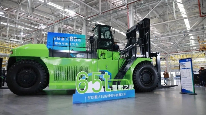 В Китае завершили испытания самого крупного в мире литий-ионного вилочного погрузчика с противовесом — его разработала компания Taiyuan Heavy Machinery Group (Taizhong Group). 10 ноября эта гигантская машина официально сошла с конвейера